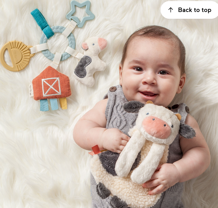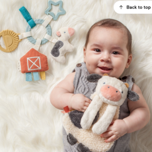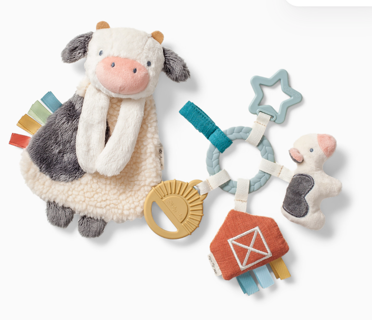 This Itzy Ritzy set comes with the Itzy Lovey and Bitzy Busy Ring. The soft sherpa toy is made for snuggles, while the ring can be attached to car seats and strollers to entertain and delight. It features textured teethers, dangling toys and playful sounds.